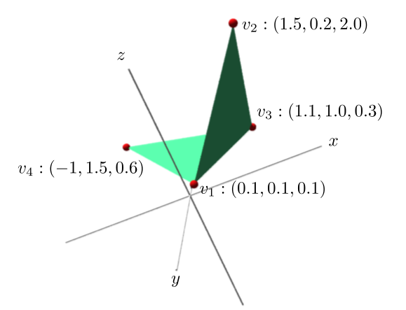 the $x$, $y$ and $z$ coordinates of that vertex.
