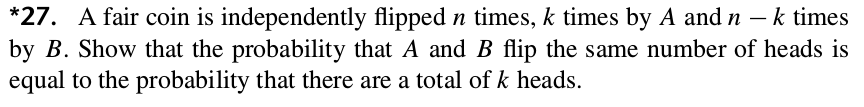 EXERCISE 5:  List all the possible outcomes of $n=4$ tosses having exactly $x=2$ heads. For example, one possible outcome is $HTHT.$ How many such outcomes are there?