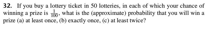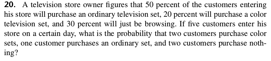 SOLUTION: $$\begin{eqnarray*} P(U=2)&=&{5\choose2}\left(\frac14\right)^2\left(1-\frac14\right)^{5-2}\\ &=&\frac{5!}{2!(5-2)!}\left(\frac14\right)^2\left(\frac34\right)^3\\ &=&\frac{5!}{2!3!}\cdot\frac{27}{1024}\\ &=&\frac{5\times4}{2}\cdot\frac{27}{1024}\\ &=&\frac{135}{512}. \end{eqnarray*}$$ ■