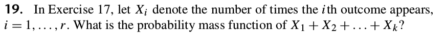 EXERCISE 10:  If $X_1,X_2$ and $X_3$ are independent random variables with Bin$(5,\frac13),$ Bin$(10,\frac13)$ and Bin$(6,\frac13)$ distributions, respectively. Find the distribution of $(X_1+X_2+X_3).$