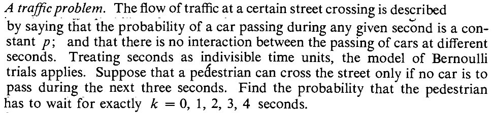SOLUTION: $X$ is a Geom(1/6) random variable. ■EXERCISE 3: In the above example compute the probability of getting the first `6' within the first 3 rolls.