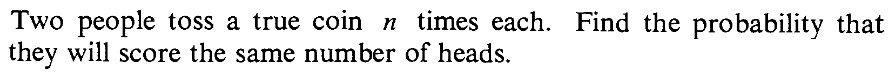 EXERCISE 33: (Banach's matchbox problem) A certain mathematician has two matchboxes (containing $n$ matches each), one in his left pocket, the other in the right. When he needs to light a cigar (smoking which, BTW, is injurious to health) he chooses one of the two pockets at random, and takes a match from the box in that pocket. (Choices of pockets are assumed independent.) One day for the first time he discovers that his chosen box is empty. What is the probability distribution of the number ($X$) of matches remaining in the other box? [Hint: To get yourself started first find $P(X=n).$ This means he has been using the same box $n$ times without ever using the other box.]