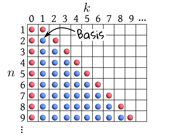 $k\in{\mathbb Z}$ in exactly $n$ steps.