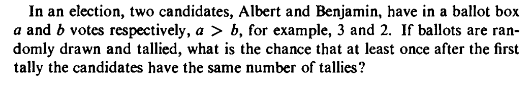 candidate $B$ gets $q=n-p (<p)$ votes. Show that the
