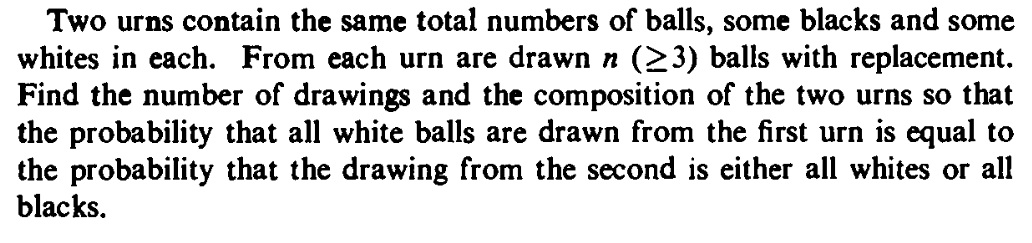 zero, while the rhs is positive. If $w_2 = 0$, then the first box has all whites and the second all blacks. If $k-w_2=0,$