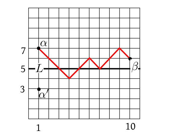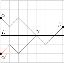 Hence #{paths from (0,0) to $(p+q,p-q)$ never returning to 0}