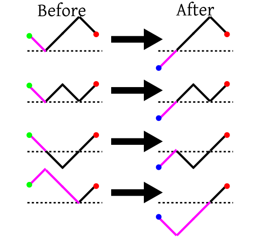 to $(2n+2,0)$ with all interior vertices $>0$ as there