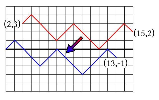 Any path from $PATH\big( (2,3), (15,2) \big)$ may be shifted 2