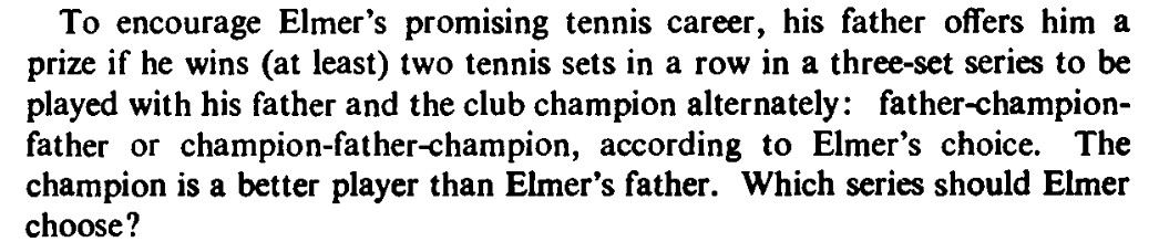 SOLUTION: Apparently the first toss plays a role in both the writings. But still a simple computation shows that $P(A)=P(B)=\frac 12$ and $P(A\cap B)=\frac 14.$ So we have independence. ■EXERCISE 2: Same problem as above, but this time the coin is biased. Say, $P(H)=0.6.$