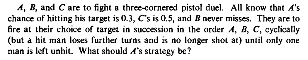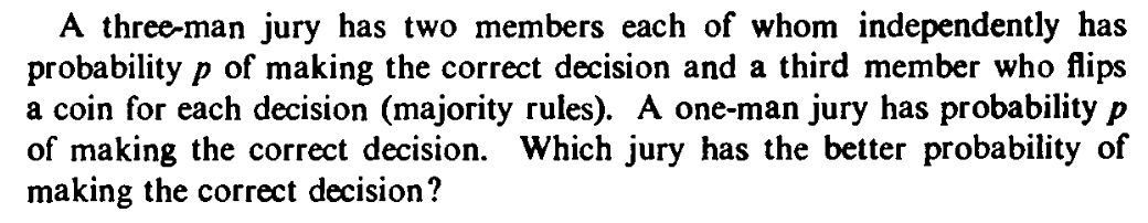 SOLUTION: Since the solution is very easy, why not try yourself first, before clicking here? ■EXAMPLE 4: Can you give three events $A,B,C$ such that $P(A\cap B\cap C) = P(A)P(B)P(C)$ but still $A,B,C$ are not mutually independent?
