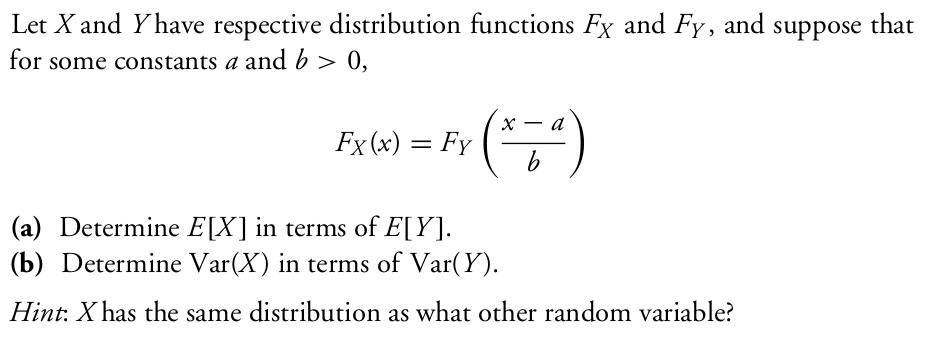 (a) $E(X) = E(a+bY) = a+bE(Y).$
