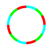 One arc of each colour