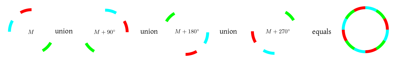 M+90^\circ, M+180^\circ$ and $M+270^\circ$ are all disjoint and build up